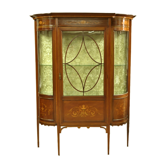 このお品物はエドワーディアンと呼ばれる時代、様式を色濃く伝えるディスプレーキャビネットです。