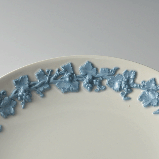 落着いたオフホワイトに、立体的な葡萄と蔦のレリーフが上品なWEDGWOOD(ウェッジウッド)のQueen's Ware(クイーンズウェア)シリーズ。