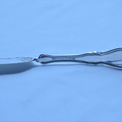 1930年頃に製造された優雅な曲線が特徴のシルバープレート製バターナイフ。